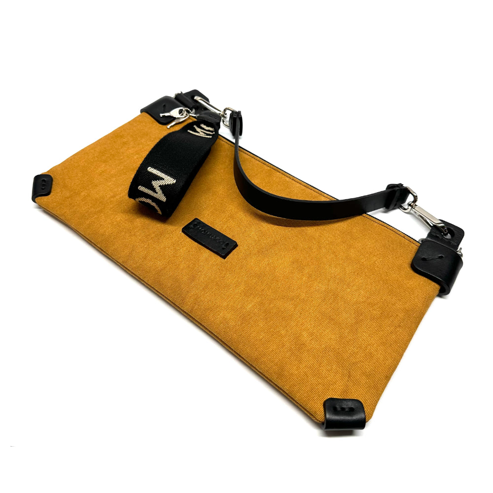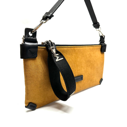 - It has a short shoulder strap in vegetable-tanned leather and a 100% recycled polyester shoulder strap for maximum versatility.